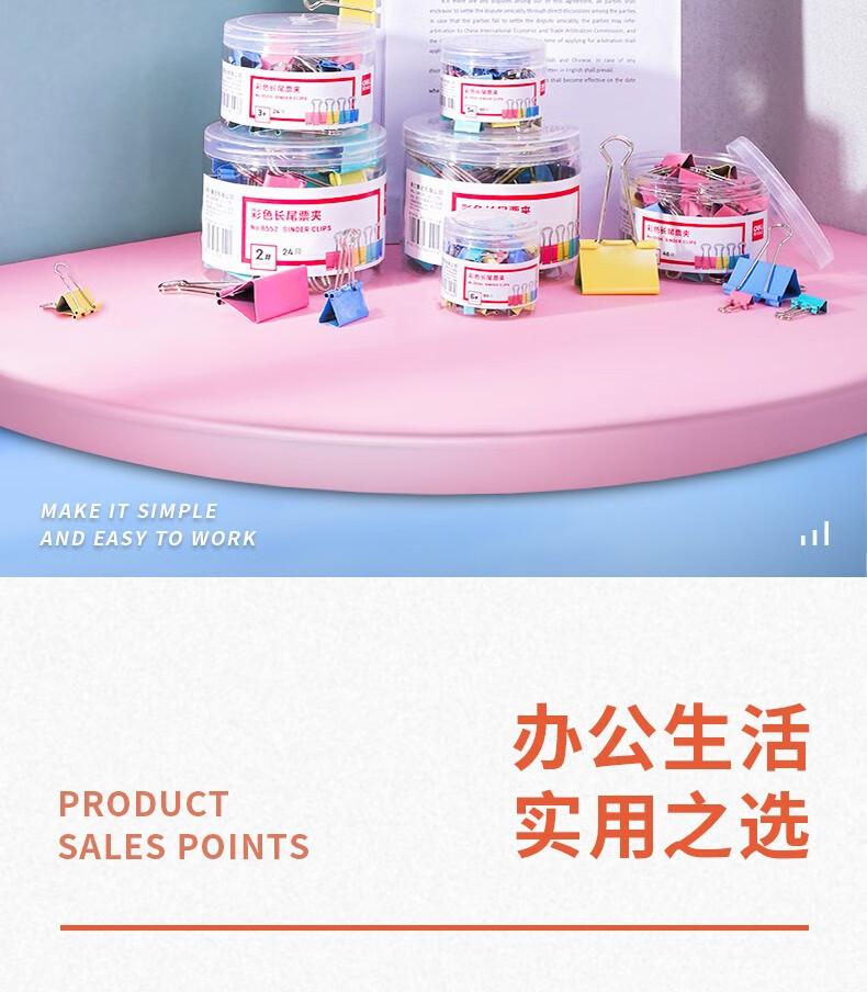 得力长尾夹文件夹子长尾夹票夹燕尾夹凤尾夹鱼尾夹蝴蝶夹多功能特固定书铁夹办公文具 【彩色款】小号 19mm 40只/筒
