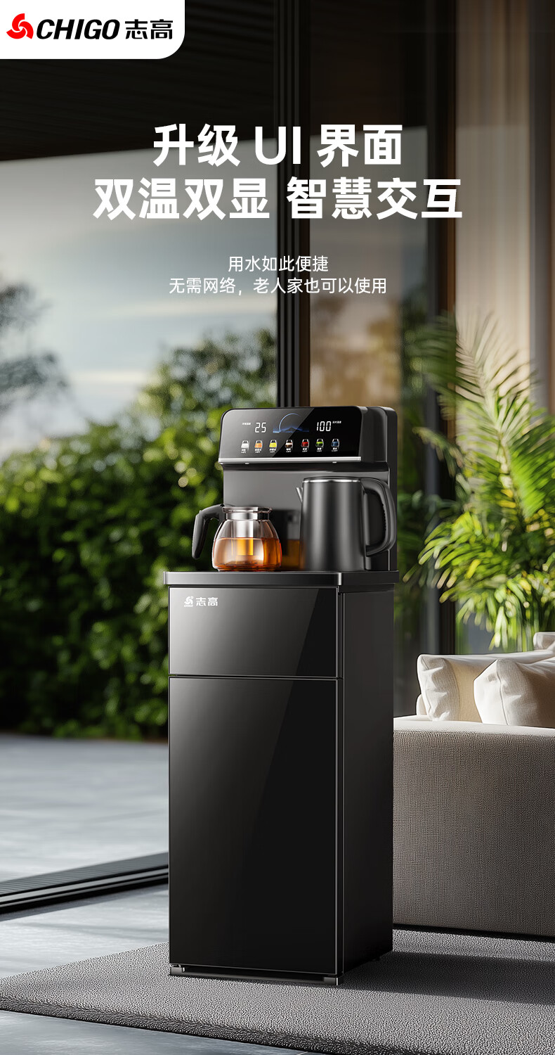 志高(CHIGO)茶吧机家用多功能智能遥控大屏双显立式下置式全自动饮水机 【促销】温热+彩屏双显+双壶双出水 温热型