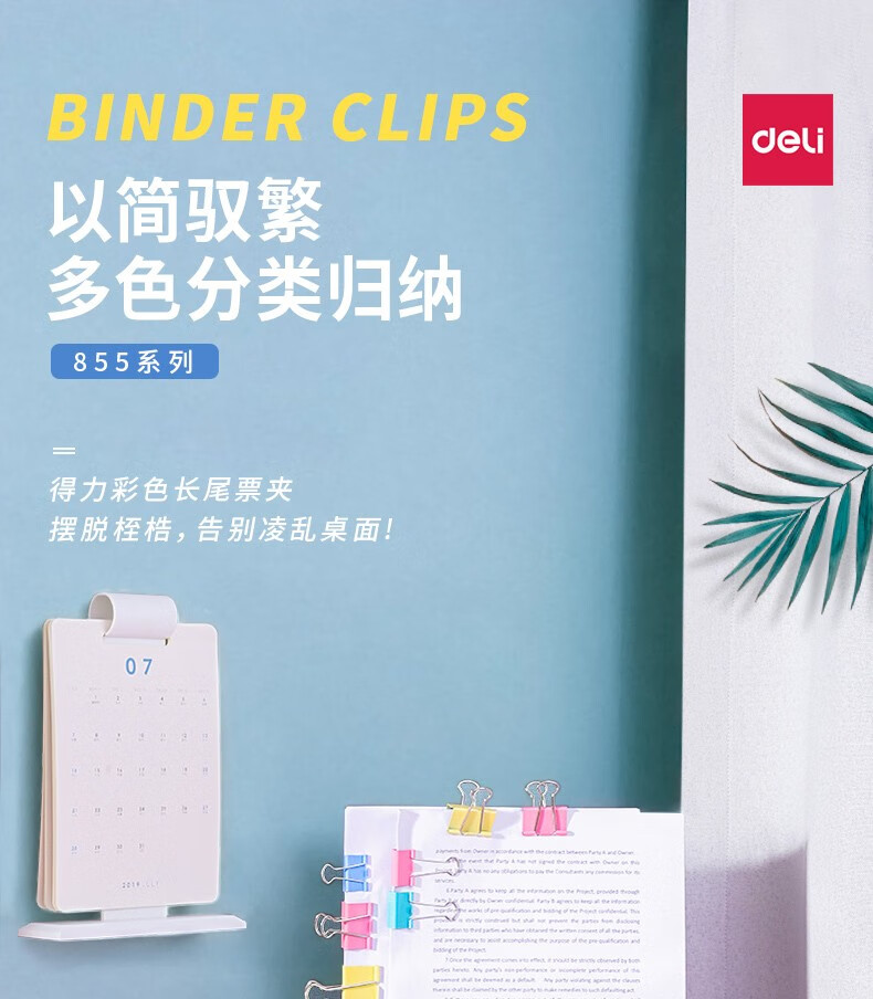 得力长尾夹文件夹子长尾夹票夹燕尾夹凤尾夹鱼尾夹蝴蝶夹多功能特固定书铁夹办公文具 【彩色款】小号 19mm 40只/筒